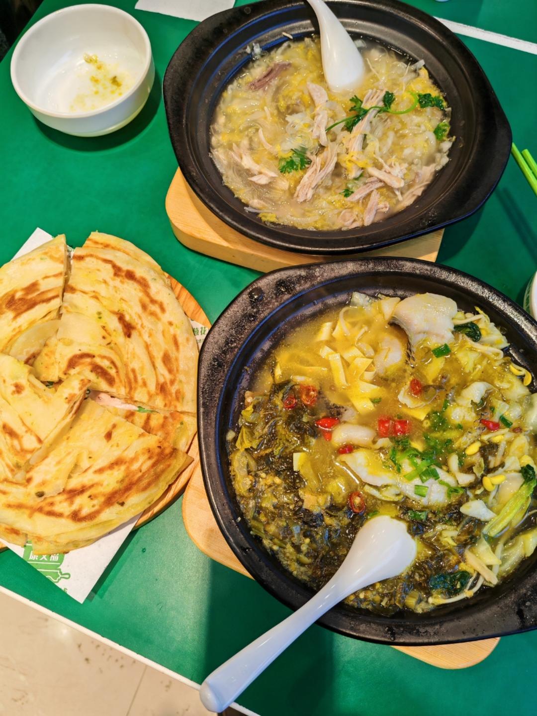 晚餐:外食 之 葱油饼+黑鱼🐟酸菜锅🍲+拆骨肉...