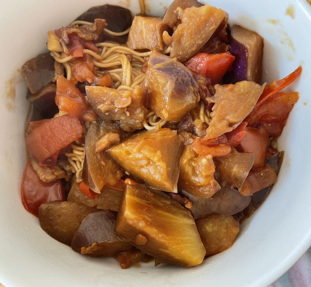 #茄子焖面#