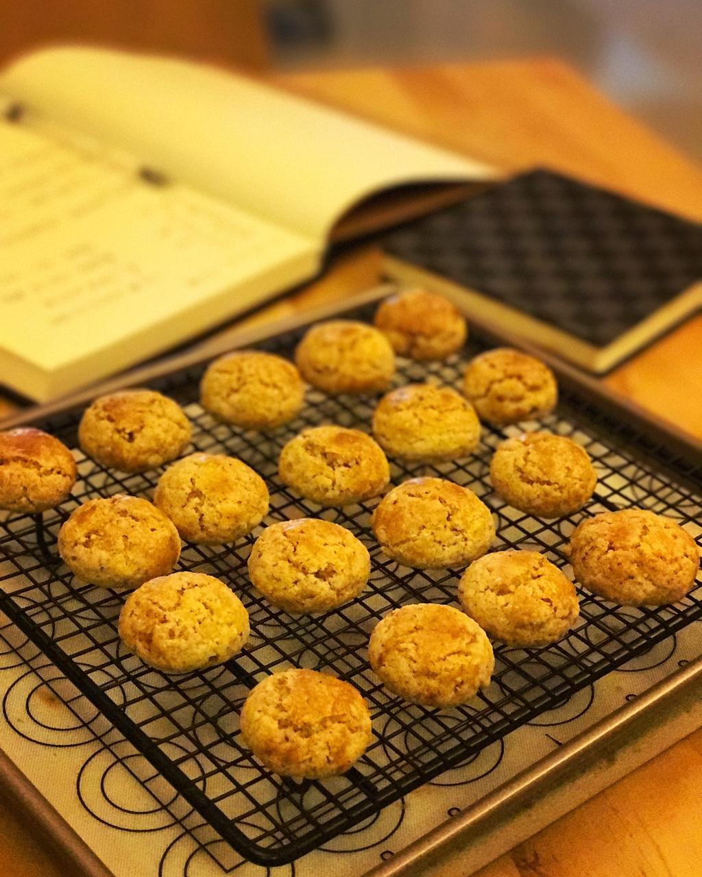 这次面糊做的有点稀软,烤完之后不是太圆了,有点往下塌了。下次试试面糊更稠一些,油再少一些。