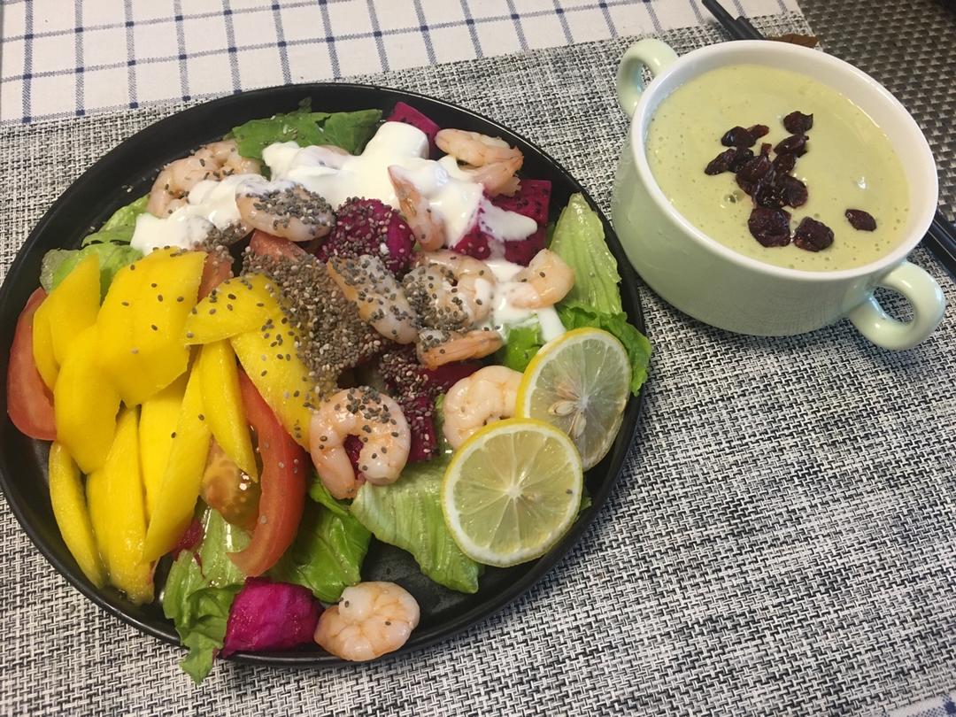 虾仁🍤芒果黎麦沙拉🥗 ➕ 香蕉🍌牛油果🥑奶昔