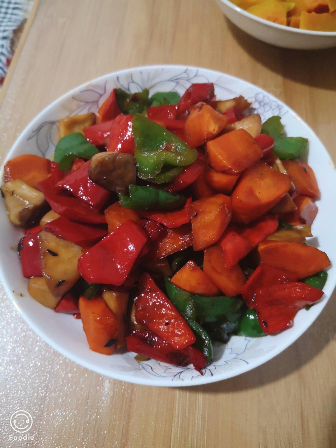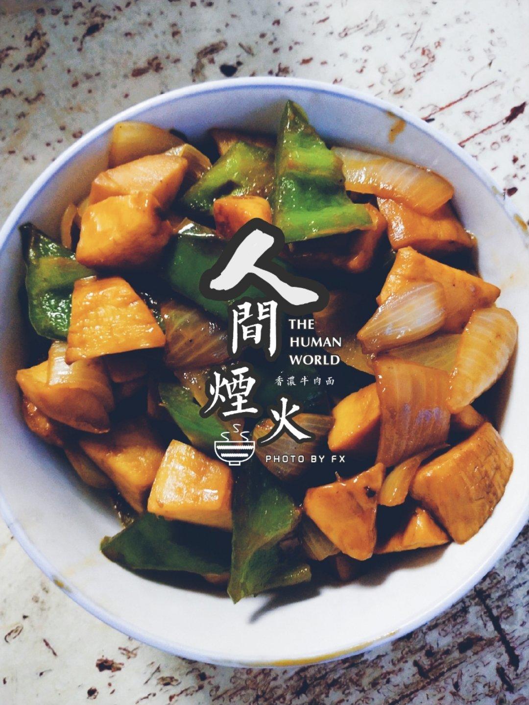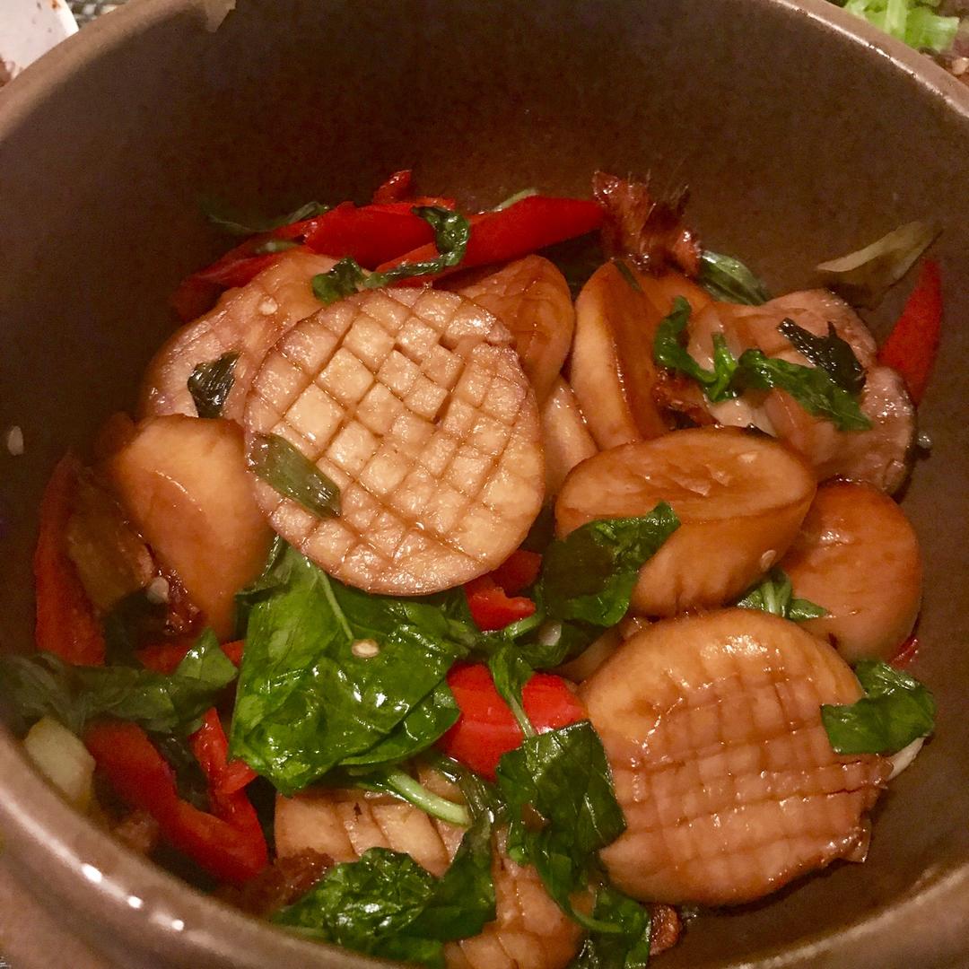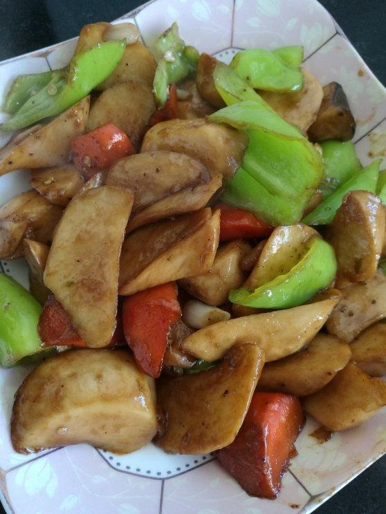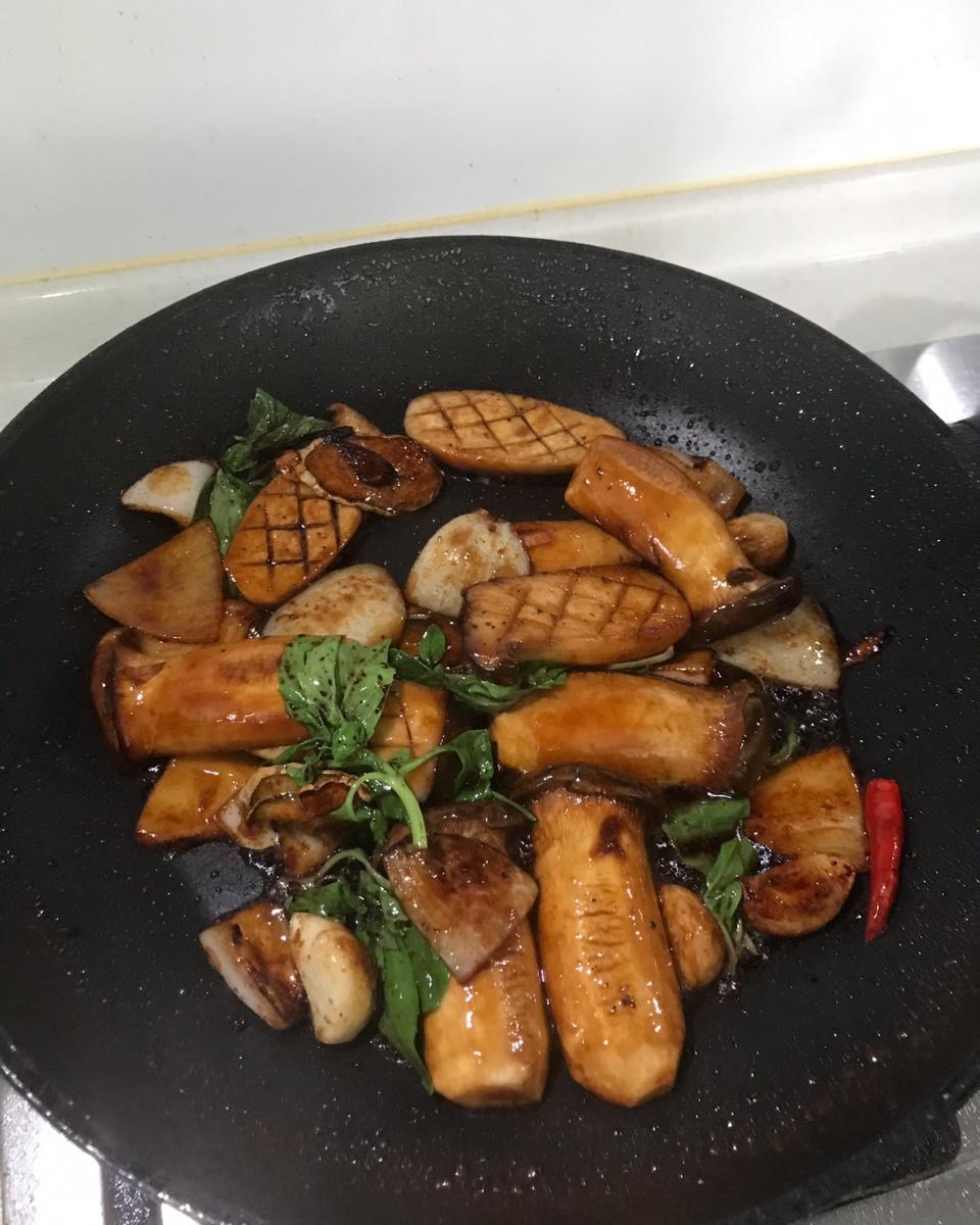 三杯杏鲍菇,酱油放多了点,颜色比较黑,但是味道不错