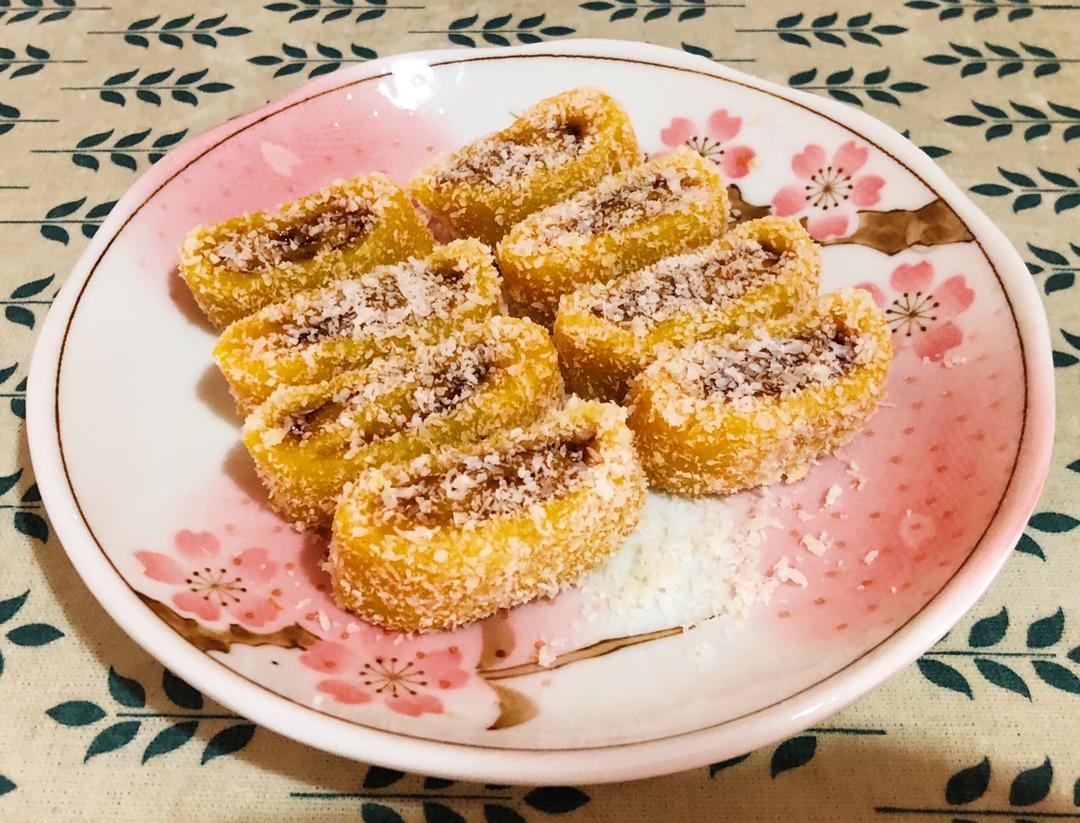 南瓜红糖糯米卷~今天换个造型:隔着保鲜膜擀开夹薄薄一层红糖卷起来,蒸好之后在椰蓉里滚一圈,等不烫了切成卷儿,南瓜&...