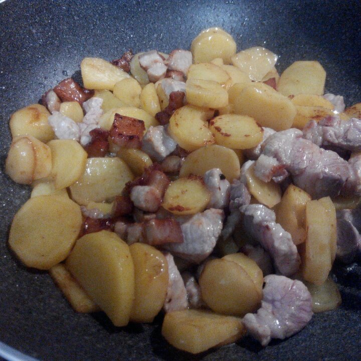 五花肉茄子土豆粉条杂炖,能量热乎食物,适合冬天