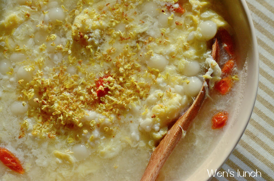 做了三色圆子,放了很多桂花,好吃,冰糖与水的比例我放的是1:10左右,我觉得刚好,也不会太甜