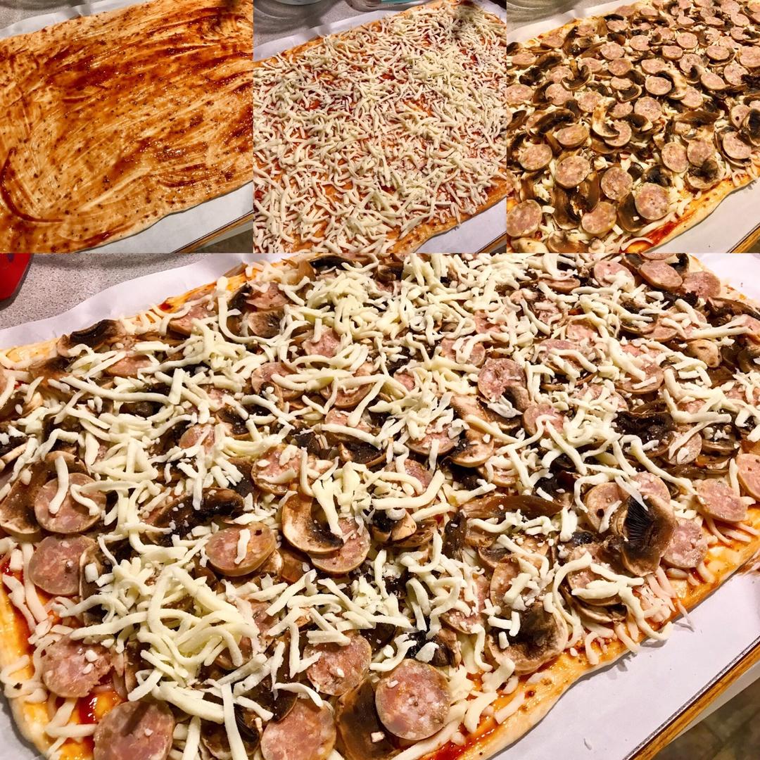 🍕🍕烤着~天然酵种从不浪费,2⃣️1⃣️寸大披萨走起,满料,香肠🍖➕蘑菇🍄,自制烧烤披萨酱,双层芝士🧀 #晚餐•2017...