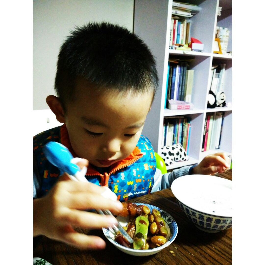 边吃边和爸爸预订明天的“爸爸,你明天还给我做这...
