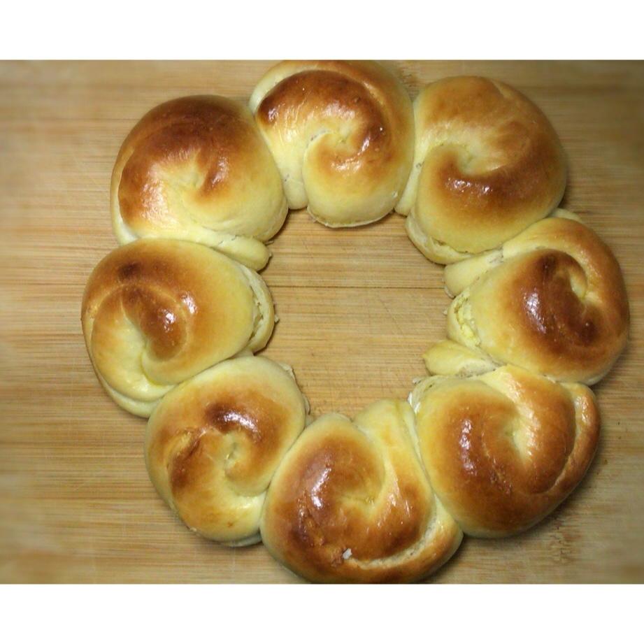 烤出来很嫩~ 消耗椰蓉馅儿和淡奶油~不过,这个圆环烤出来之后不是很结实。不知道要是用6寸模具会怎么?不过很好吃啦 #早餐...