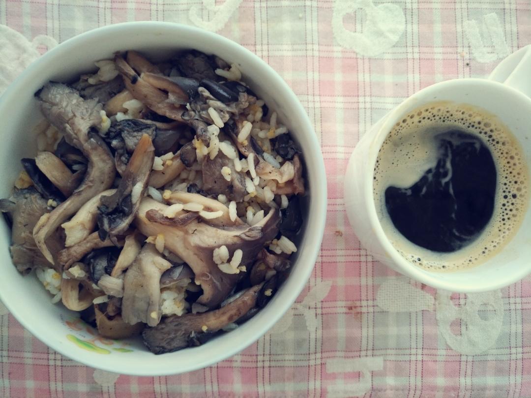 黄油蘑菇拌饭,冰箱里有什么吃什么,