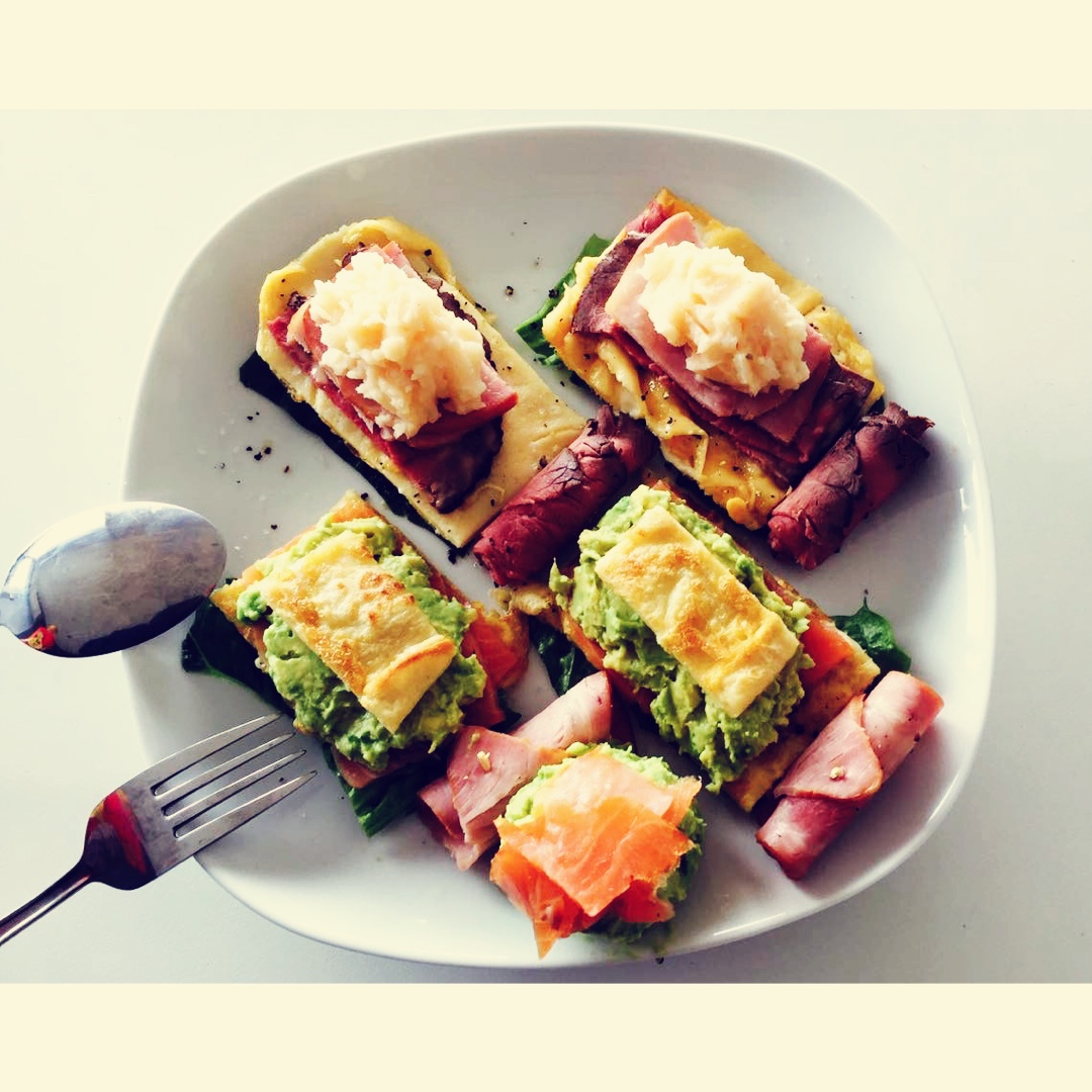 生菜、鸡蛋饼、烟熏三文鱼、牛油果泥;...