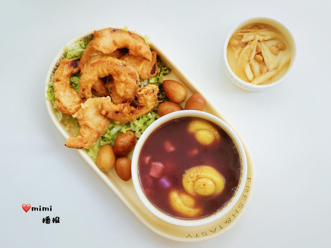 南瓜天妇罗 紫米汤圆 芋圆 豆酱姜