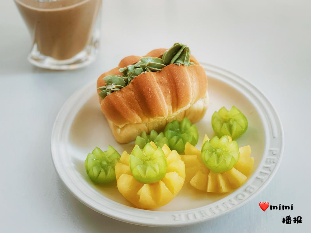 羽衣甘蓝酸奶乳酪包 人生果 葡萄 红枣核桃露