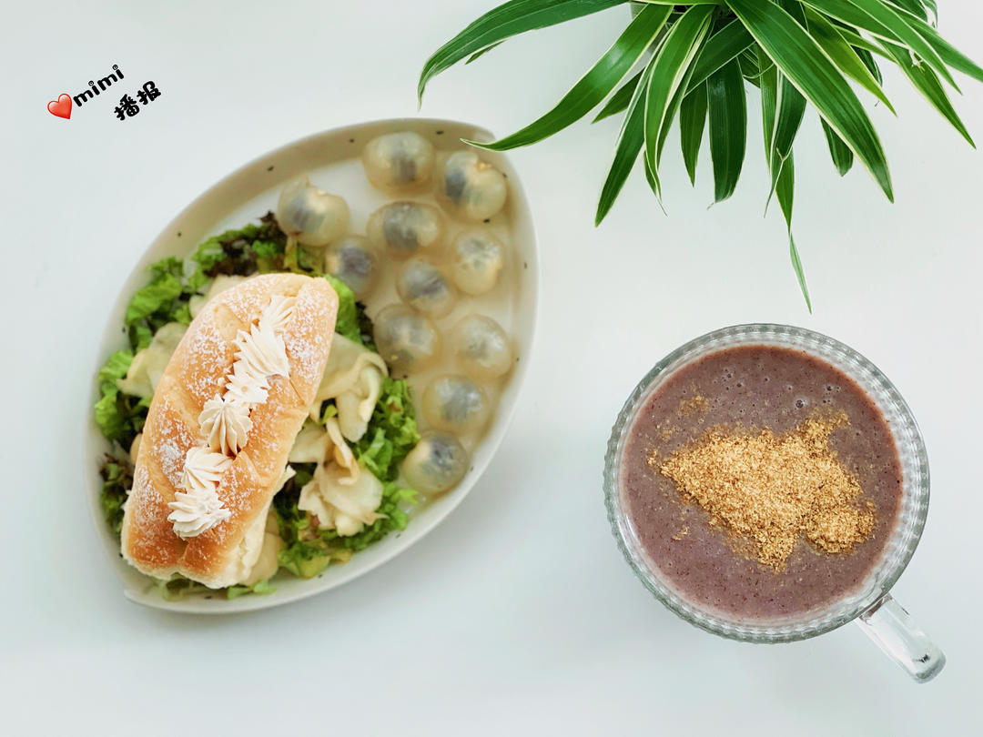 羽衣甘蓝酸奶杂粮饼 人参果 葡萄 燕窝红枣百合核桃露