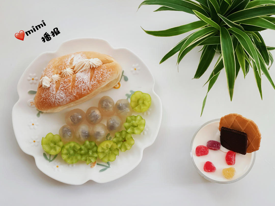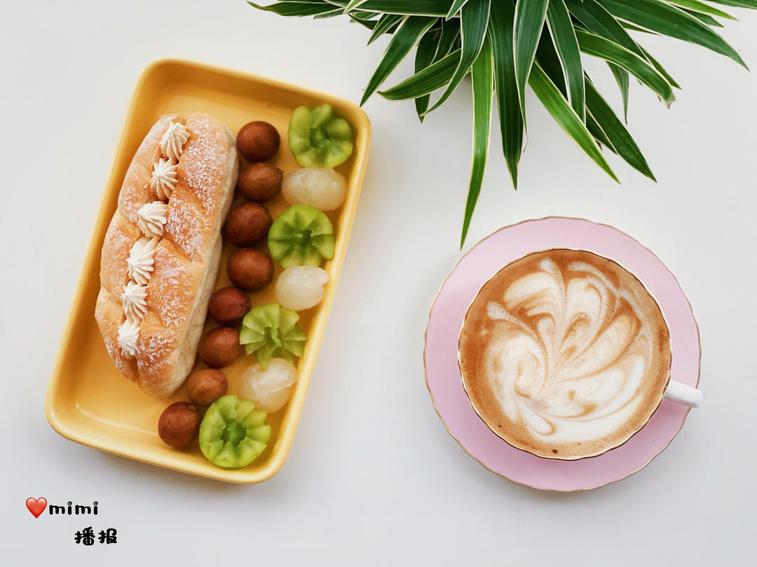 酸奶乳酪包 黄皮 葡萄 荔枝 牛奶咖啡☕