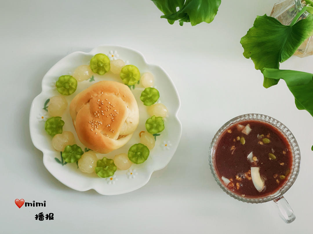 酸奶乳酪包 葡萄 龙眼 黑米红枣糊