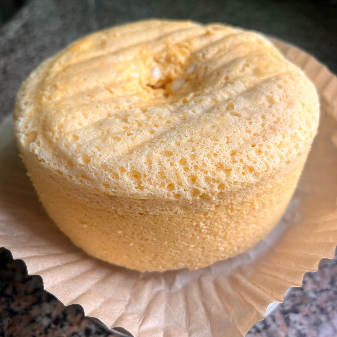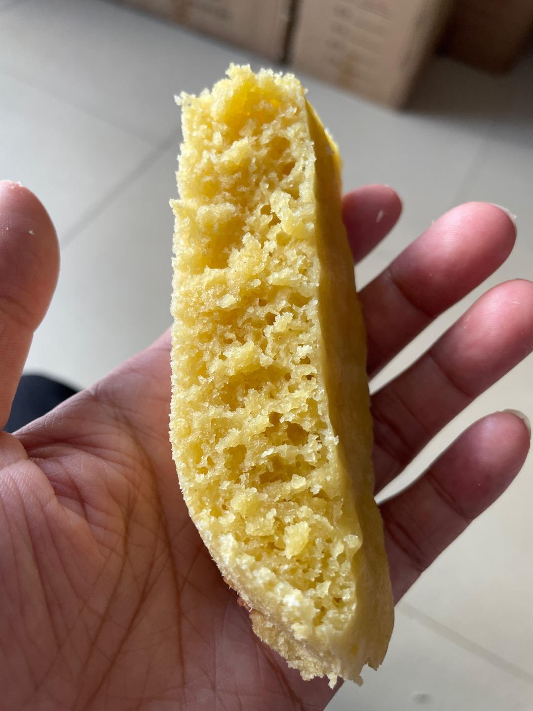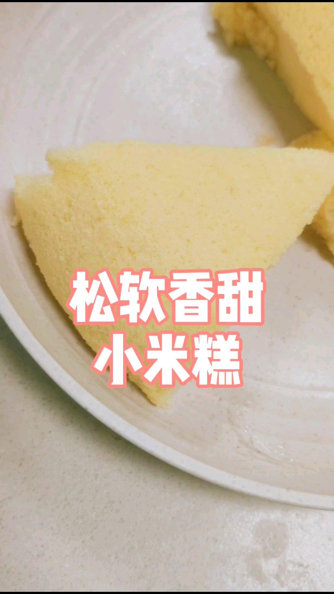 #小米糕# 换成小米粉做,配方1/4的量做了一小碟,糖只用了25g,甜度我觉得够了,没加泡打粉,口感还可以!