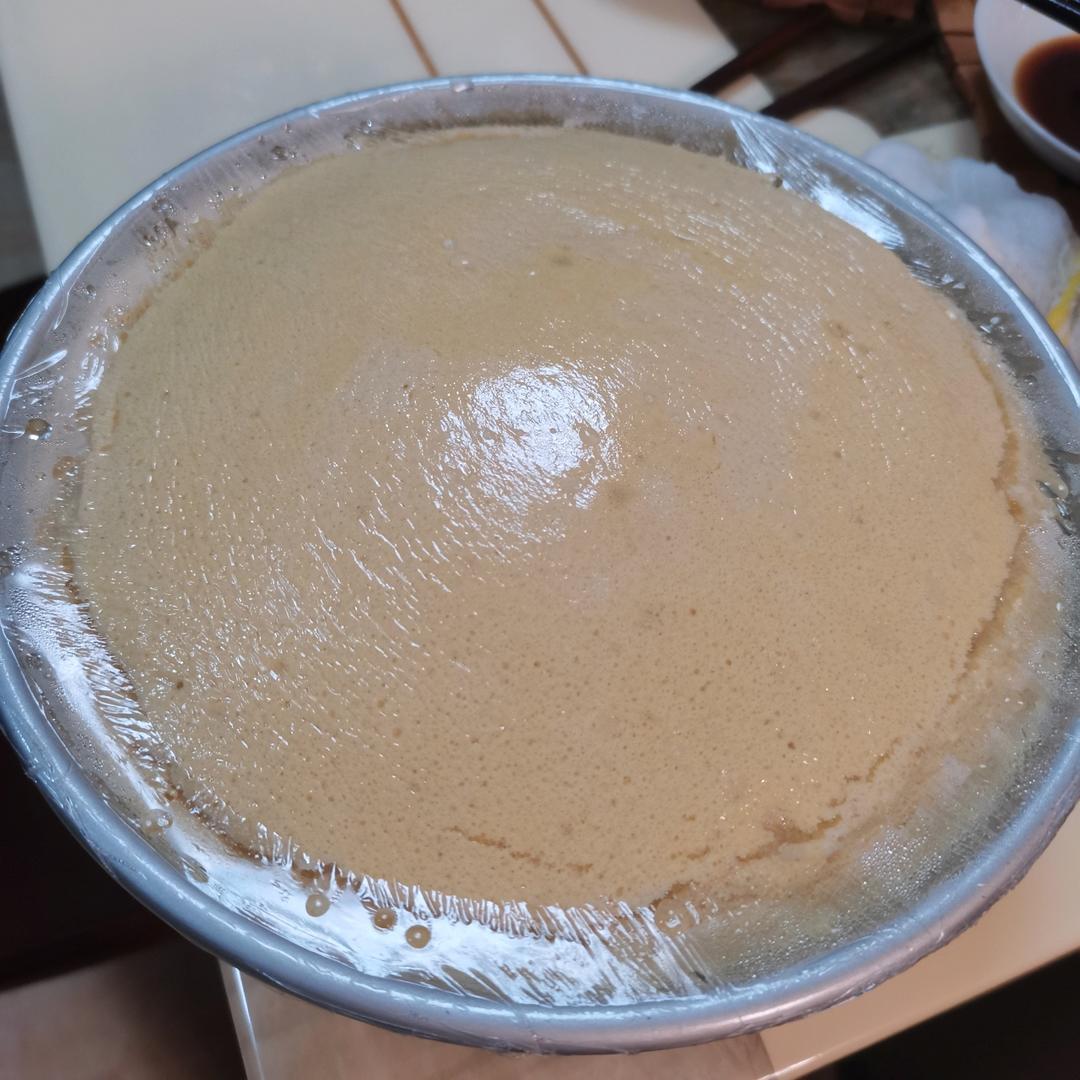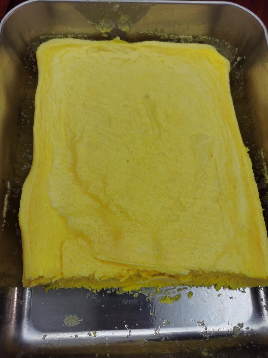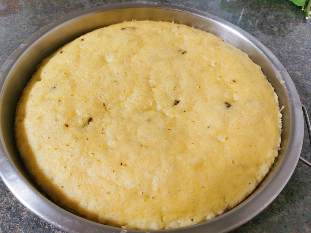 #小米糕# 换成小米粉做,配方1/4的量做了一小碟,糖只用了25g,甜度我觉得够了,没加泡打粉,口感还可以!