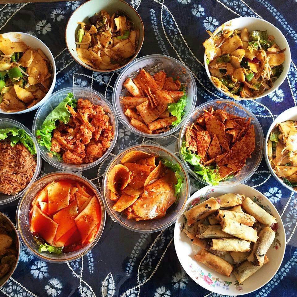 炸春卷,豆角炒土豆,麻婆...