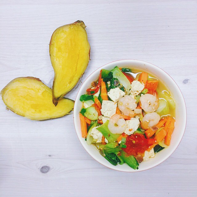 没时间思考做啥了,回家已饿晕,所有蔬菜扔进去加一勺大酱就是蔬菜豆腐汤……