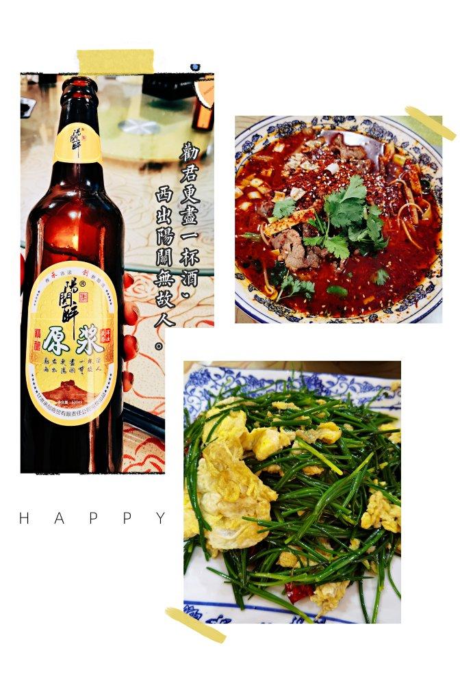 只拍了水煮牛肉和沙葱炒蛋,以及当地的啤酒——阳关醉🍺