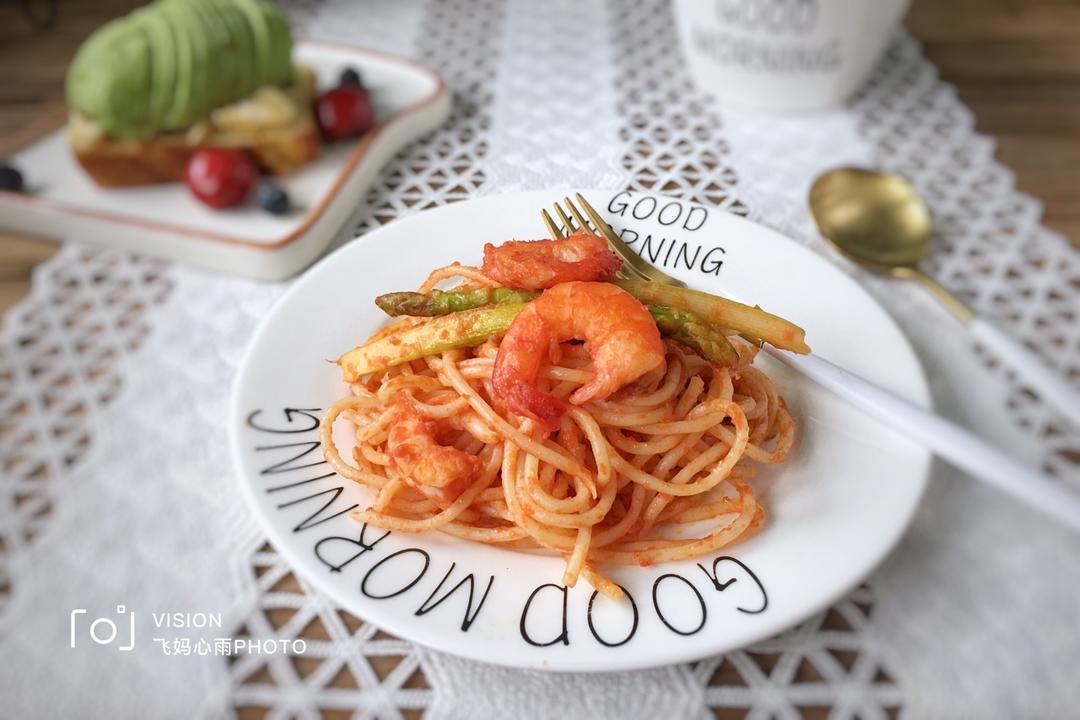 吃早餐是一种态度今日早餐:番茄虾仁意面,鸡肉土豆腰果西兰花浓汤, 椰蓉吐司,奶咖