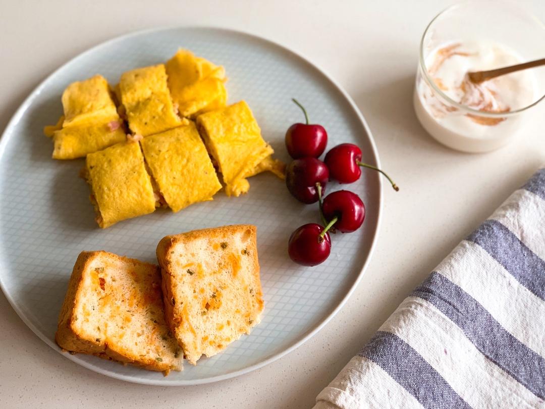 吃早餐是一种态度今日早餐:鸡蛋肉未肠粉,九节虾芦笋,酸甜可口罗宋汤,奶香蓝莓南瓜子焗荞麦馒头,油麦茶