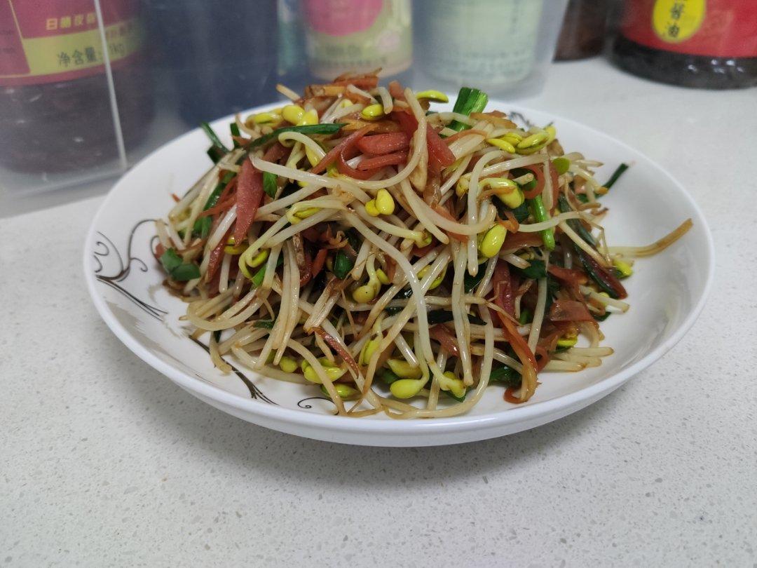 上次的干豆炒豆芽不成功,就是因为没有韭菜,有了韭菜才是正宗的