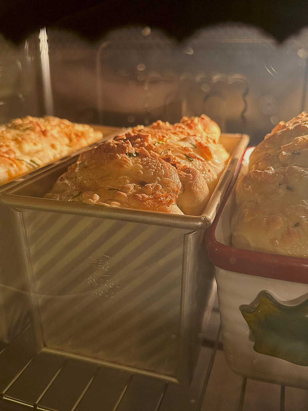香葱肉松吐司进阶版😍放了大量的香葱和肉松,两种整形手法,一个放了拉苏里拉芝士🧀一个没放刷了两次蛋液🥚有个爱烘焙的老公😚早...
