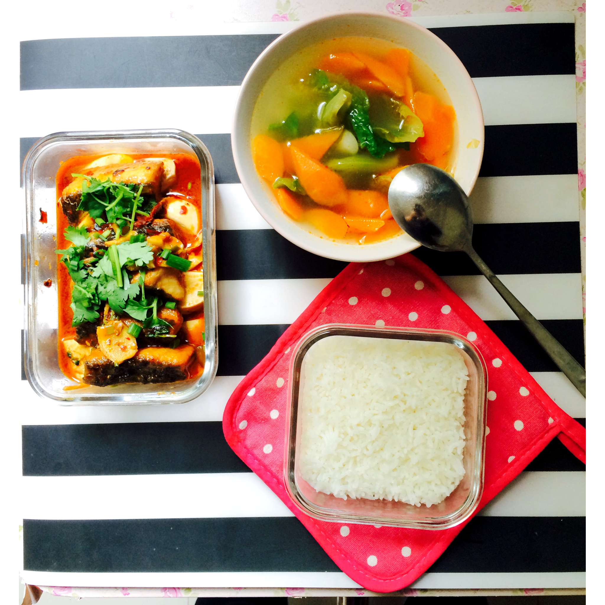 鱼块烧豆腐+蔬菜汤~