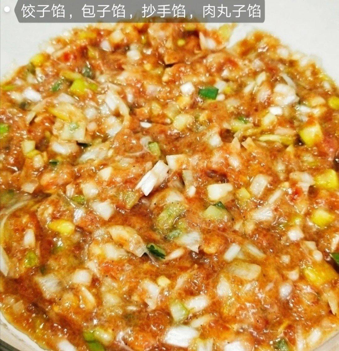 荸荠猪肉馅,花椒八角葱头开水浸泡放凉打入肉馅 ,点一次凉水OK