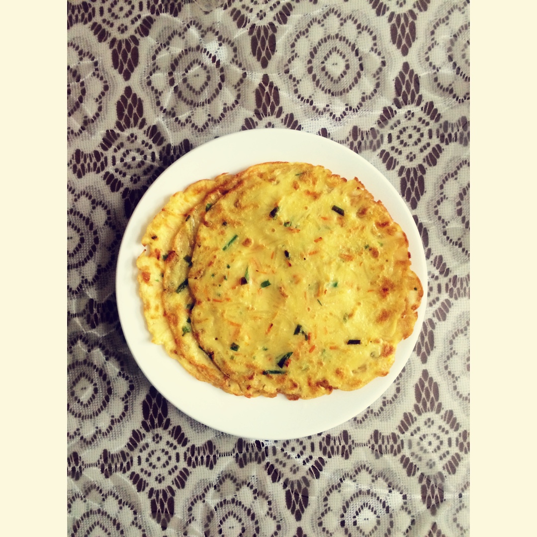 土豆丝 萝卜丝 小葱 鸡蛋~厚度刚刚好!😊😊