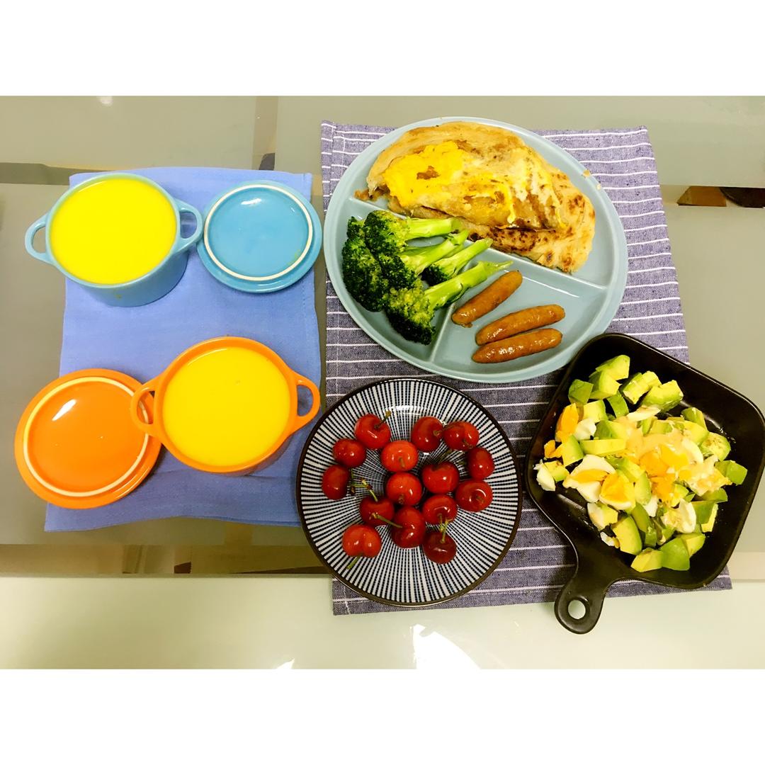 两份早餐,和同住的小朋友一起吃吃吃~