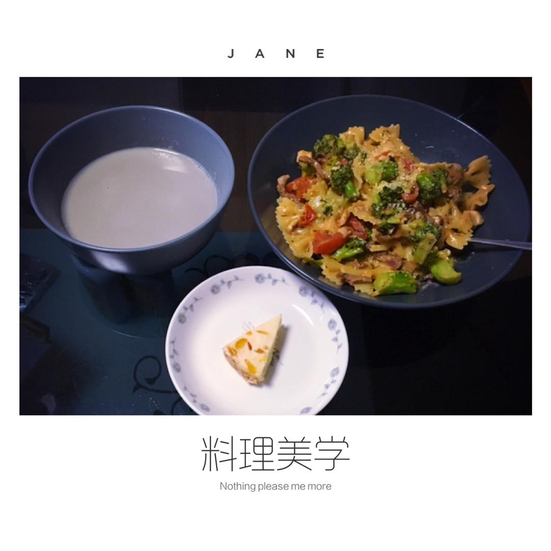 意大利面,黑豆豆浆,水果奶酪