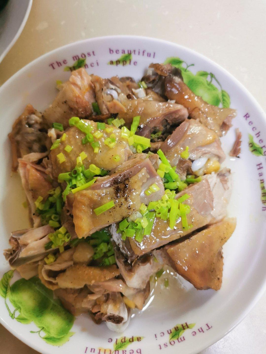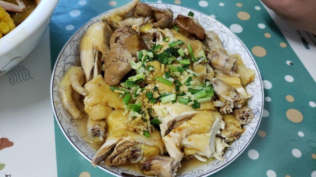 葱油鸡,不太会切!25分钟可以熟了!这次是土鸡,新鲜的,肉感不错👍