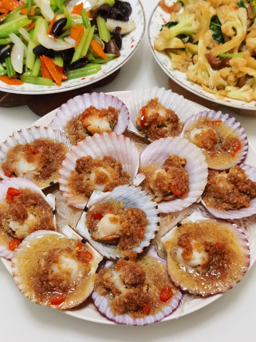 食材:扇贝、粉丝、蒜蓉、酱油、蚝油