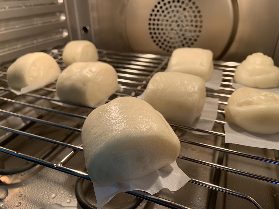 不甘心最近的红糖馒头翻车,想了很久都想不通哪里出问题。今晚试白馒头,没有泡打粉,尽管还是不够光滑完美,到没有出现皱皮解气...