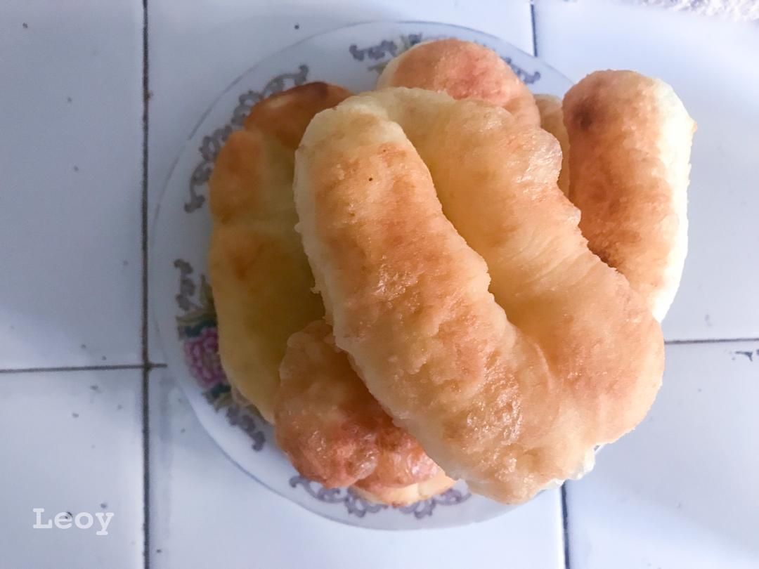 面包机和面。没有发酵成作者那种马蜂窝状。现做的。锅太小了,就只能做小的。炸好了每个都有5厘米以上高,超蓬松,但是炸过之后...