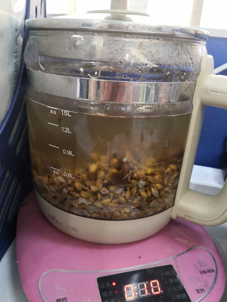 2.120g炒麦芽+几个山楂,放入养生壶一起煮,煮至出味,可以煮久点。喝完一壶再加水再煮一壶,...