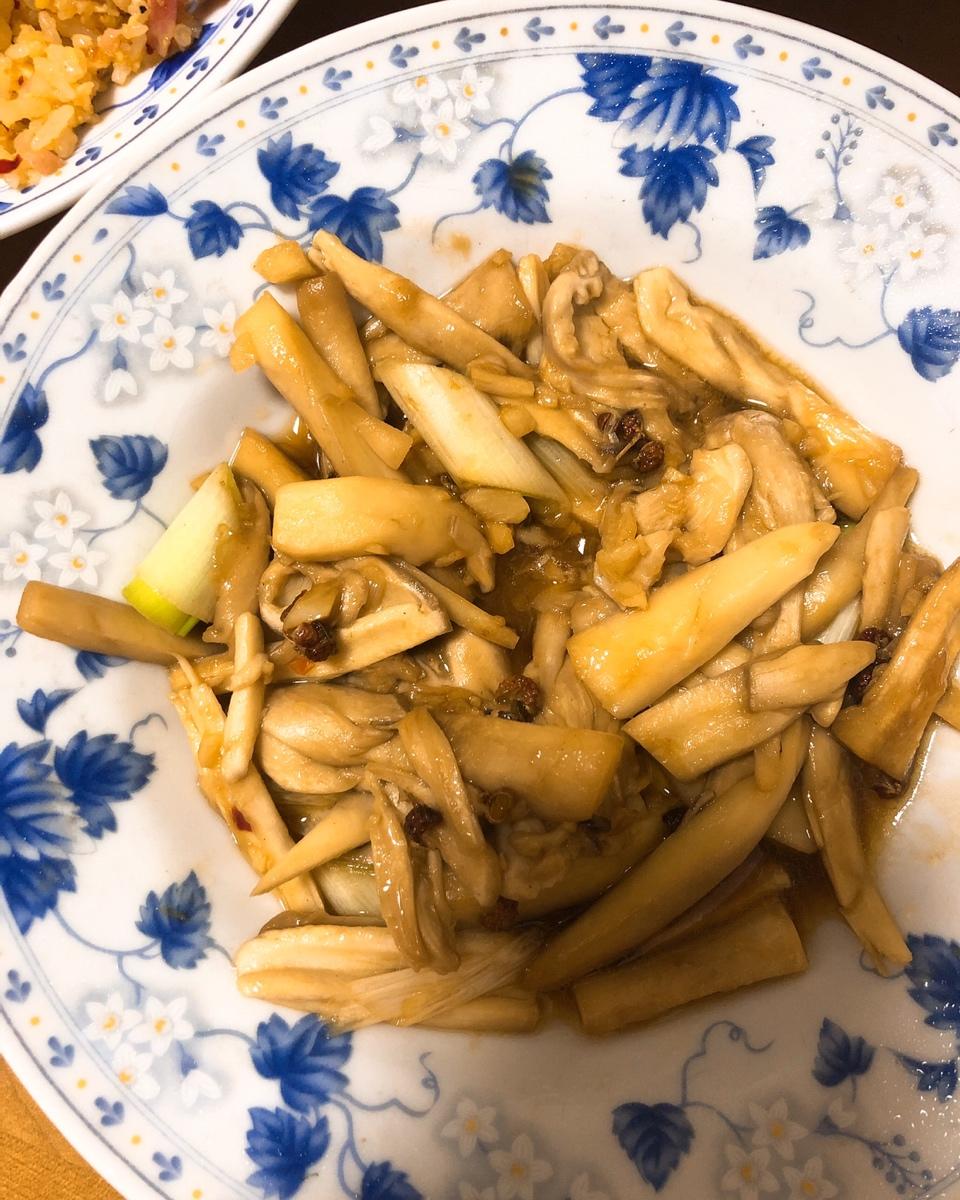 加了鸡腿菇(纯粹因为不吃就坏了),其余完全按照方子做,好吃,但后味有些苦涩,不知道为啥