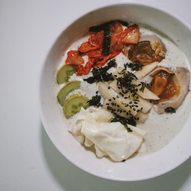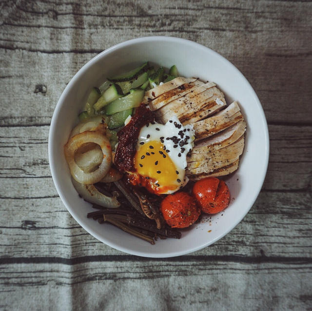 从首尔回来后我妈念叨了好久 这就给她复制出来 只是少了蕨菜和豆芽 但是还是hin好次!