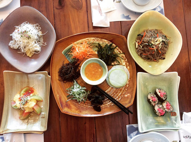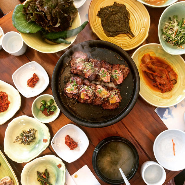 碟子太多拍不过来,主角是年糕排骨和上面的烤鸭肉,用叶子包着夹各种小菜吃,yum。这是在全罗南道吃的,比首尔美食多还便宜😁...