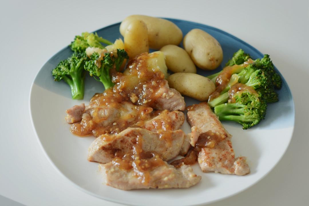 担心猪扒会柴,腌制时加了生粉,另加了点蜂蜜,真的是比以前好吃很多。