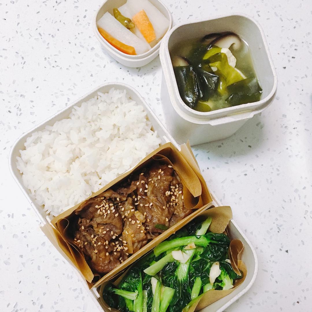 照烧肥牛&蒜蓉塔菜&味增汤&泡椒萝卜