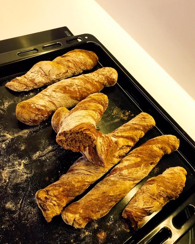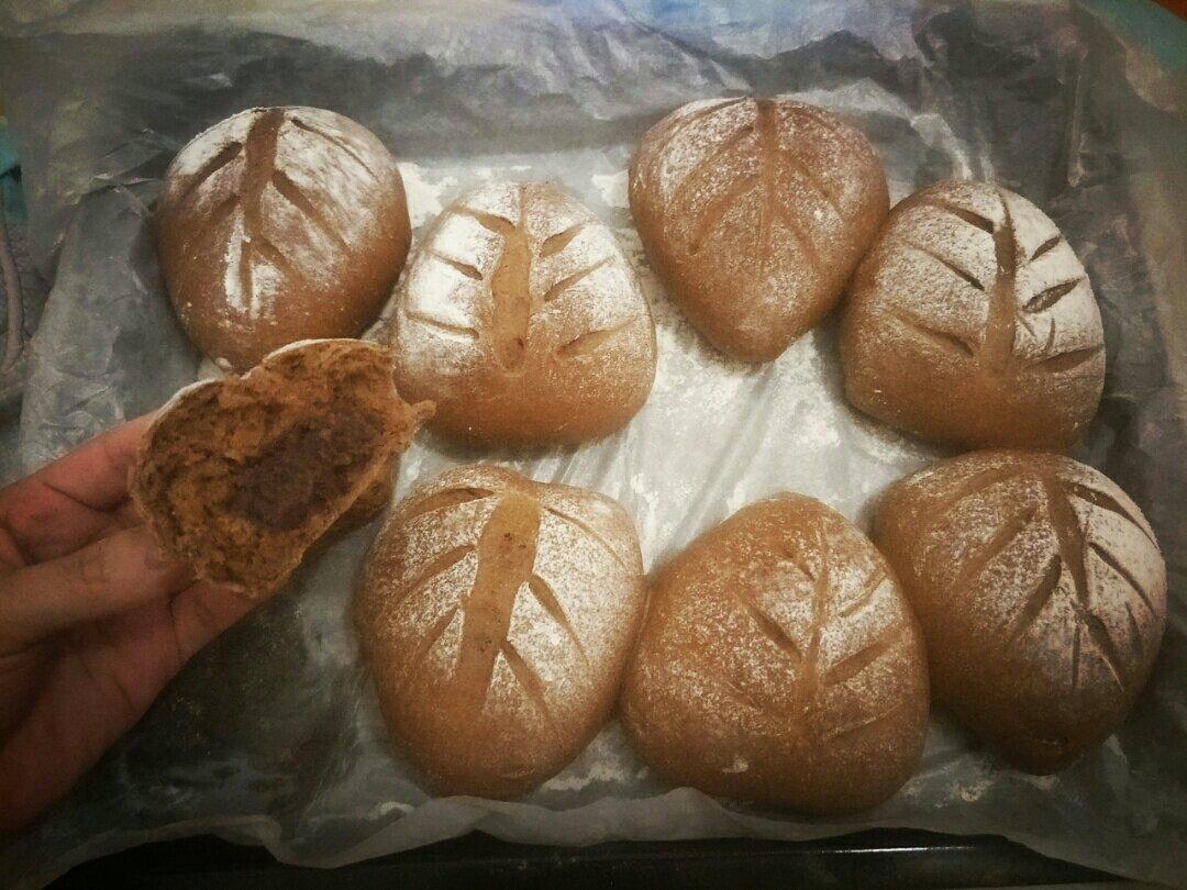 第一次烤欧包,很成功,刚烤好的面包软软的,表皮有点脆脆的,加了法芙娜可可粉,特别香👍👍👍