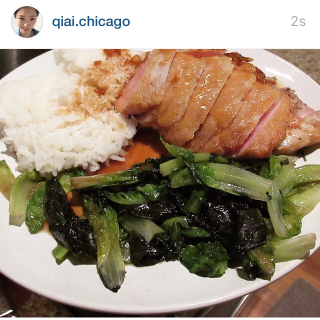 中餐西做。蒜香煎猪排,米饭和蚝油生菜。酱汁是焦糖加醋和黄油做的,生菜炒了适合我的胃!猪肉用盐胡椒和大蒜腌制过夜。锅烧到冒...