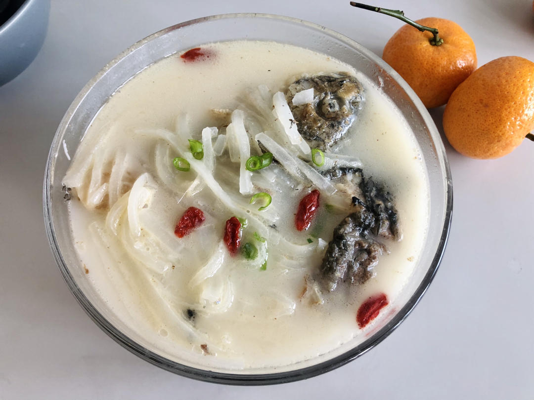 在家打扫卫生,做一碗暖暖的鲫鱼汤进补一下