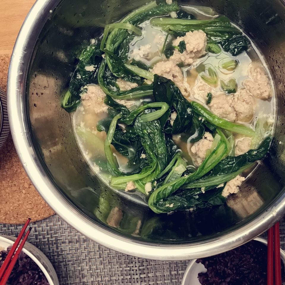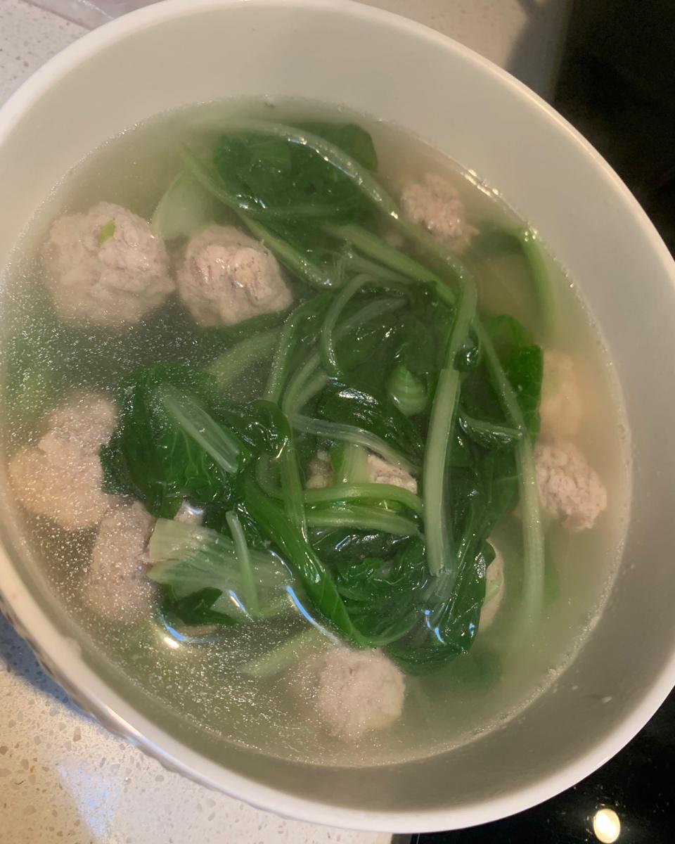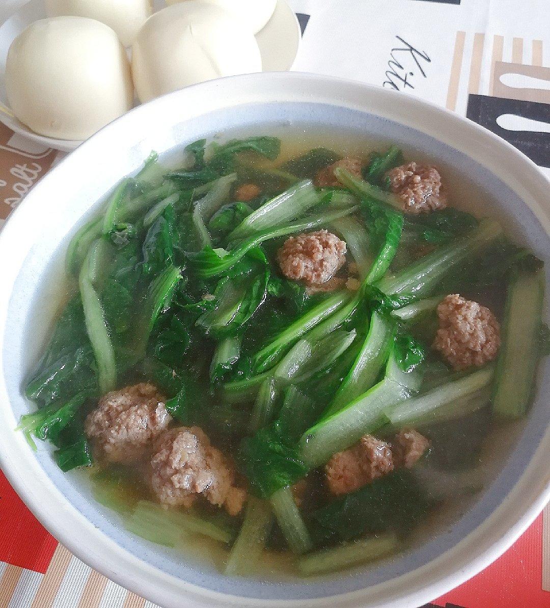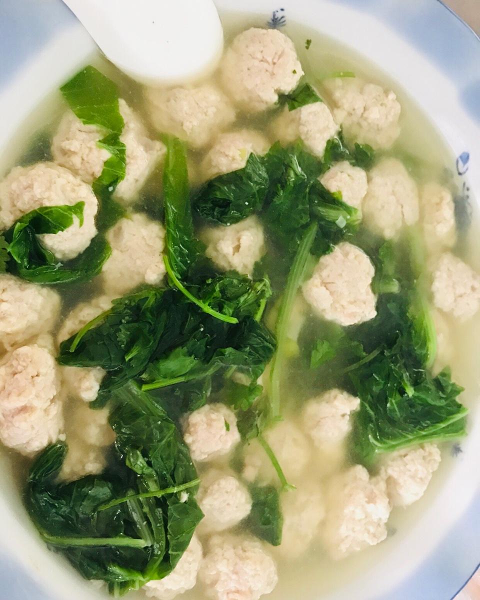 #小白菜汆丸子#