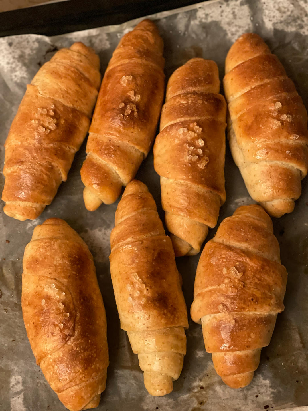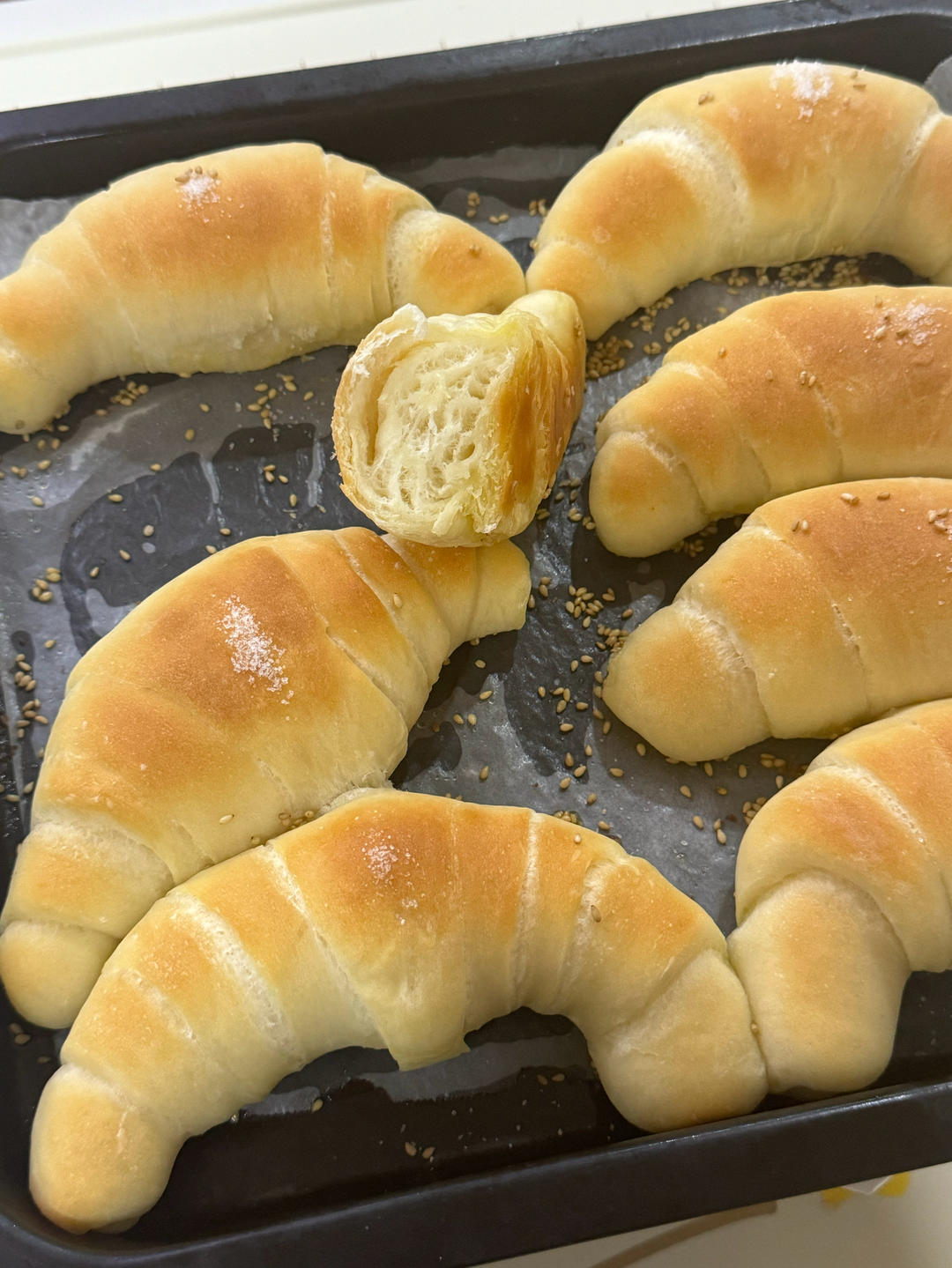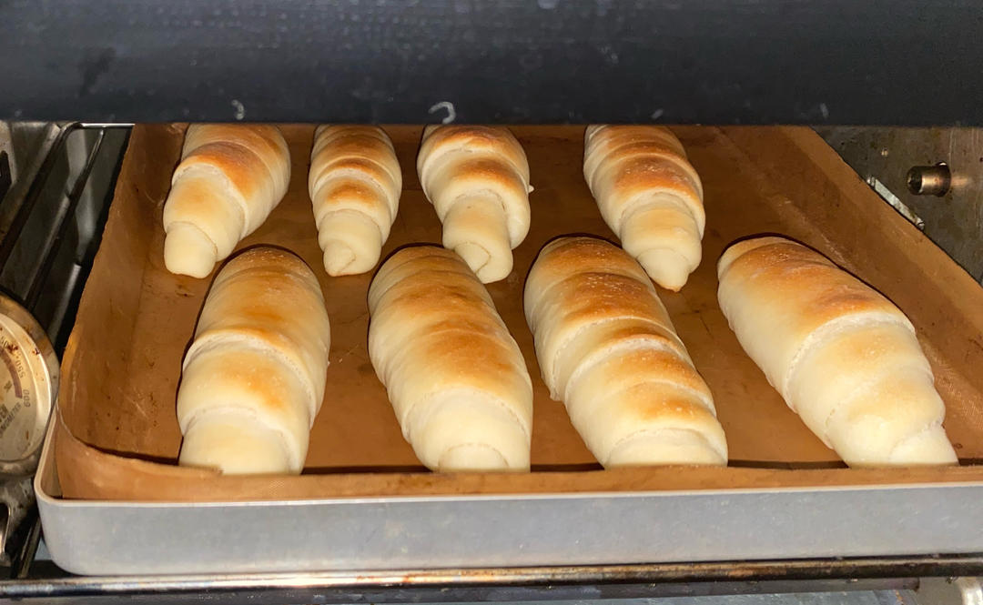 最最爱吃的盐可颂,以前总是苦于整型不到位,看了老师的示范终于入门了,虽然整型仍不理想,但跟自己比进步不少。做面包...