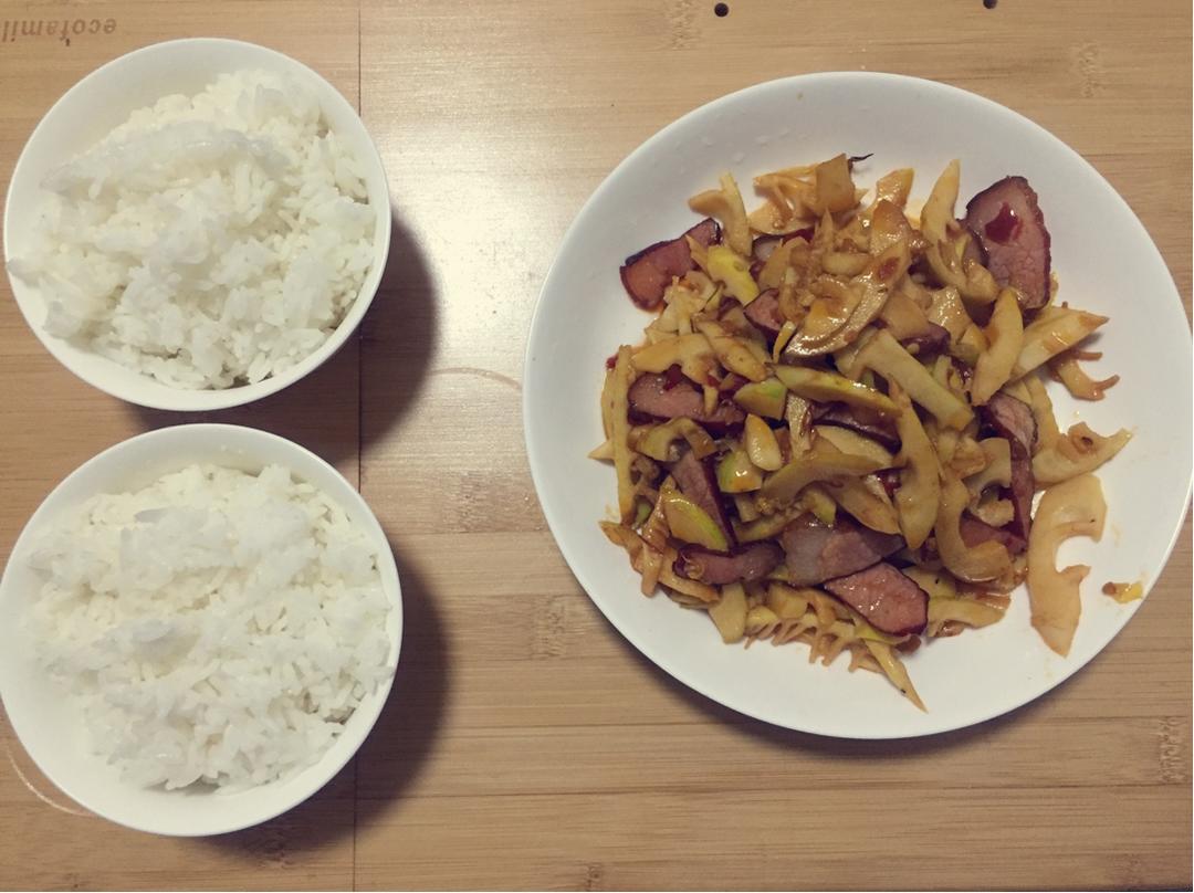 当季的春笋实在太嫩了,加上腊肉随便炒炒都很好吃。