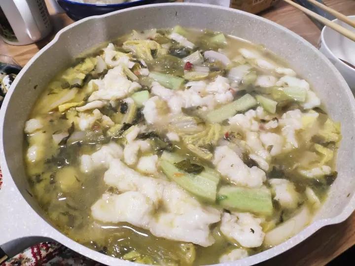 有海底捞的底料,酸菜鱼怎么做都不会出错。用龙利鱼替代黑鱼,再放入我们喜...