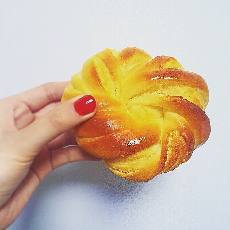 左手抓面包
